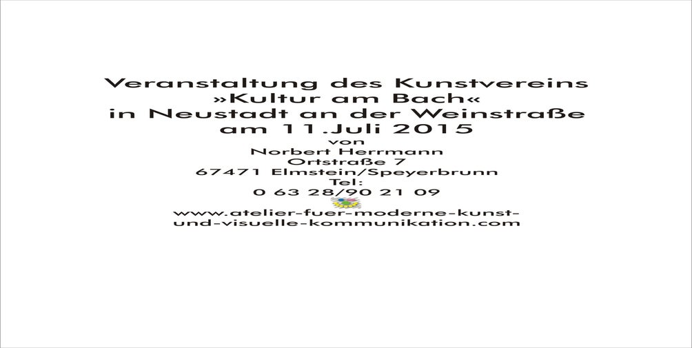 In dieser Ausstellung in der Hack-Galerie 2012 in Kaiserslautern benutzte Norbert Ernst Herrmann noch ausschließlich seinen primären Vornamen. Er ergänzte ihn später bis heute mit seinem zweiten Vornamen Ernst - so hieß sein Vater -, weil in der Nähe seines Ateliers und Wohnortes ein Mensch gleichen Namens als Mitglied der faschistischen AFD öffentlich auftrat. Mit dem will Norbert Ernst Herrmann nicht verwechselt werden.