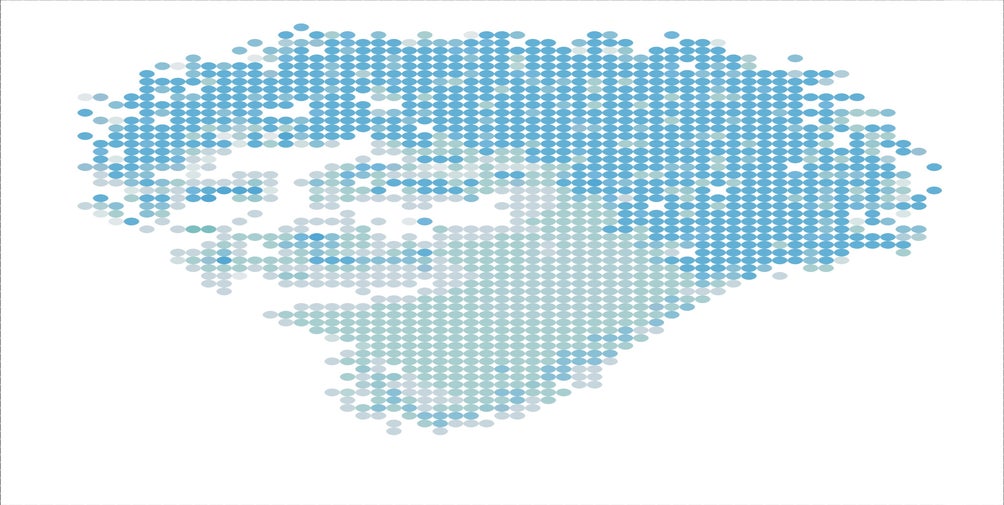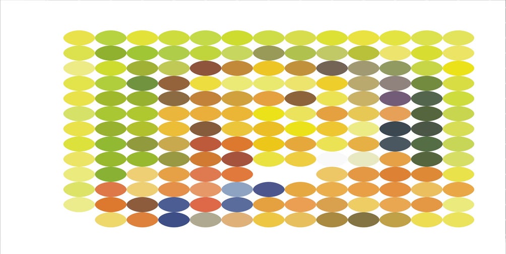 Den ersten Eindruck beim Betreten der Galerie bestimmen Bildformate voller Reihungen. Horizontale, vertikale, diagonale. Schwarzweiß, zwei - dreifarbig, pastellenleise, leichtend-satt und auch schon mal irgendwie bunt. Trotz zunächst vage feststellbarer Unterschiede – ein Prinzip geordneter Konsequenz, basierend auf geometrischen Formen und Zeichen: Kreise, Vier- und Dreiecke, spitzwinklige Zacken hier, verlorene Teile dort, vertraut neben verdreht, vertieft neben verflacht, je nach Schattenriss ohne Herkunft. Das Spiel eines optischen Täuschungsmanövers oder Irritation als Prinzip zur Information, Realisation oder Reflektion?
