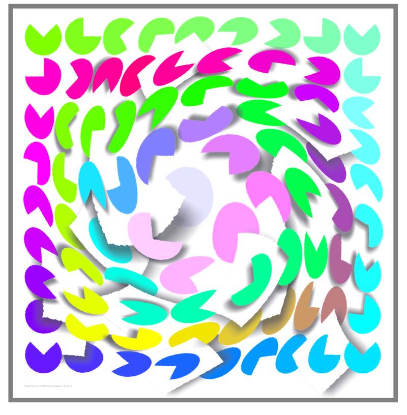 Der Künstler Norbert Ernst Herrmann sagt: "Der Konstruktivismus war mir immer nahe. Und so beschäftigte ich mich intensiv mit der Analyse des Werks von Victor Vasarely. Ich erkannte, dass ich an den Grundformen Quadrat und Kreis ansetzen musste - und so interpretierte ich die "Quadratur des Kreises" auf meine Art visuell neu." In vielen meiner bisherigen Arbeiten konnte ich zwar zeigen wie ein System aufgelöst wird, aber nicht, wie auch wieder eine neue Qualität entsteht. (siehe unten)